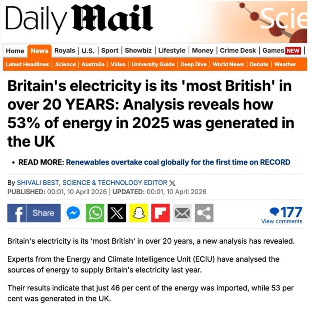 Read more: Daily Mail; Ember “Clean Power fortifies Britain against gas price shocks”